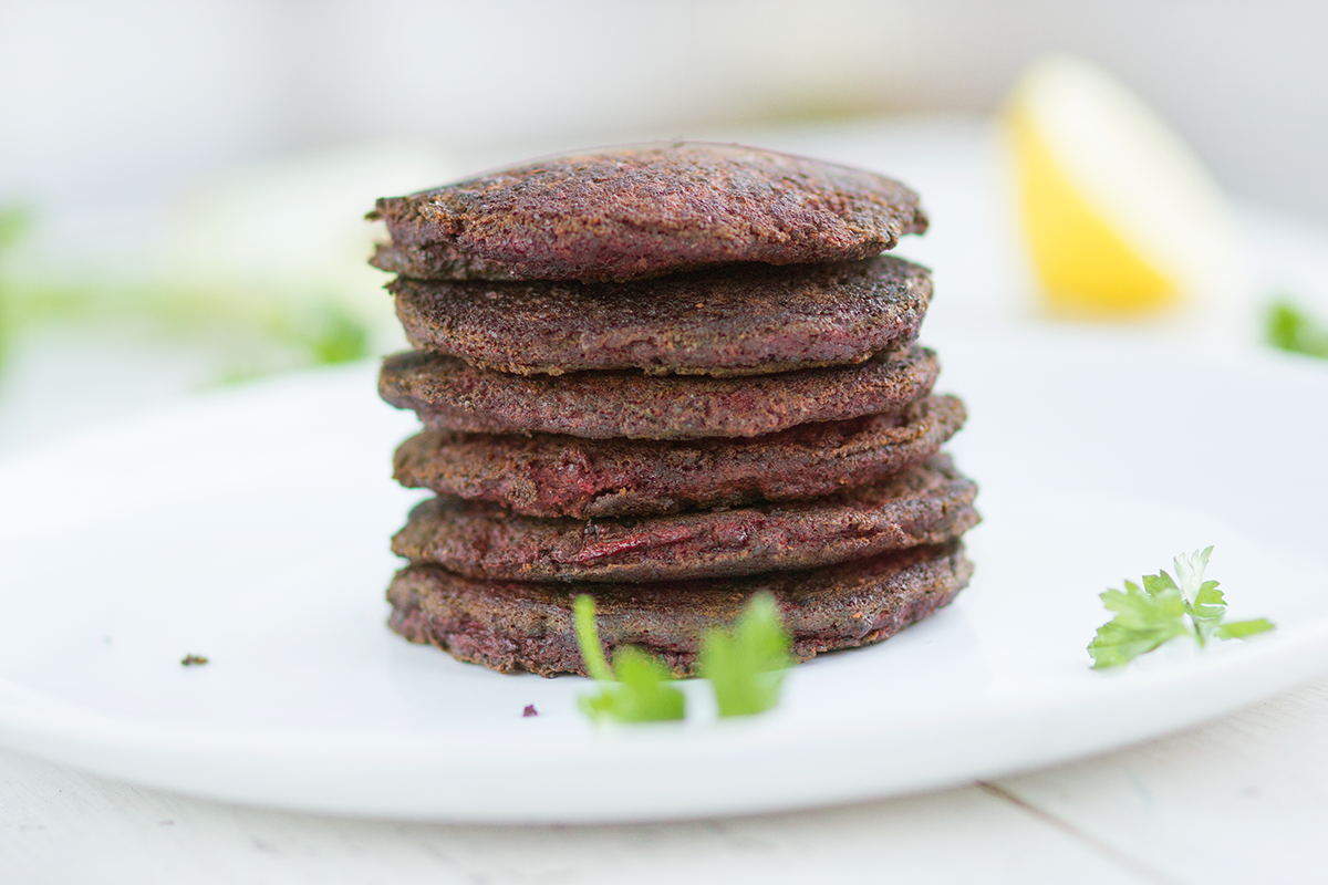 Buraczane pancakes z mąki konopnej