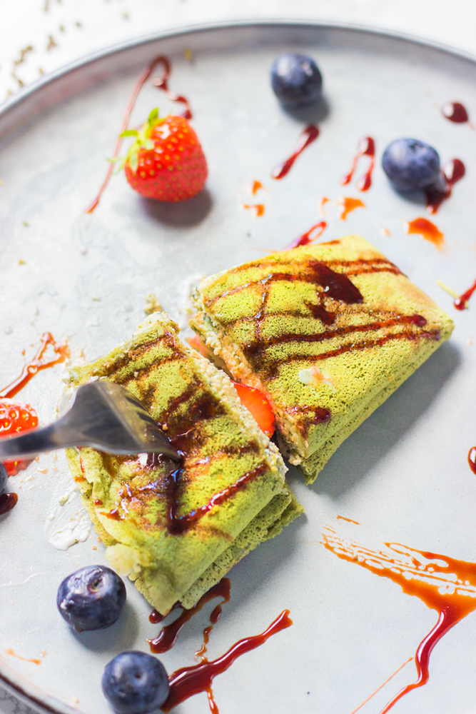 Jeśli mnie obserwujecie to wiecie, że nie sporadycznie stosuję mąkę pszenną, a to nie tylko ze względu na gluten i moją nietolerancję tego pokarmu, co jest poniekąd związane z faktem, iż jest to roślina mocno zmodyfikowana i często na etapie uprawy traktowana trującym glifosadem. Na szczęście przepis na pulchniutkie naleśniki bez mąki pszennej absolutnie nie jest zagrożony, jesteśmy w stanie stworzyć identyczne, tylko lepsze, bo dużo zdrowsze przy pomocy innych mąk, na przykład owsianej i gryczanej. Ja poszłam o krok dalej, dodałam także 1 łyżkę stołową mąki konopnej i 1 płaską łyżeczkę mojej mieszanki do smoothie (chlorella, spirulina, białko konopne, zielony jęczmień w równych proporcjach) by podnieść ilość białka w cieście do maksimum nadać moim naleśnikom pięknej, zielonej barwy. Udało się 🙂