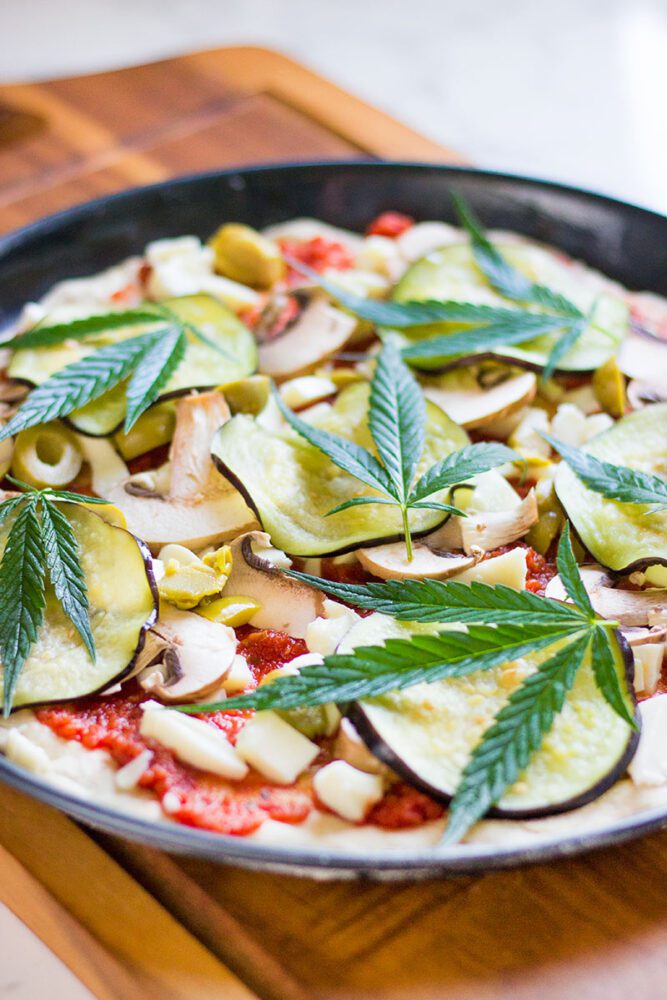Mamma mia! Nie potrafię odmówić sobie tej przyjemności. Przynajmniej raz na kilka tygodni pieczemy u nas w domu pizzę. To nie tylko nasze ulubione danie, ale przede wszystkim rytuał, podczas którego świetnie się bawimy w kuchni, podpijamy winko, relaksujemy się waporyzując konopie i wymyślamy różne smaki na naszych pickach. Też tak macie? 🙂 Jak na fankę konopi przystało, postanowiłam wykorzystać mój ulubiony surowiec kulinarny, czyli świeże konopne liście jako jeden ze składników mojej pizzy. Efekty okazały się zniewalające, szczególnie po polaniu pizzy infuzowaną oliwą z oliwek. Petarda!