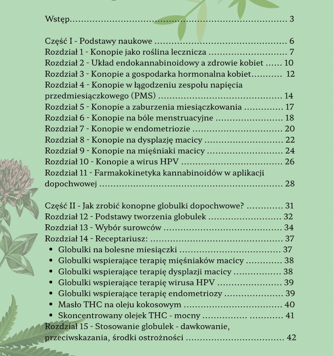 Celem tego e-booka jest przedstawienie naukowych podstaw działania konopi w kontekście poprawy zdrowia kobiet oraz praktycznego przewodnika tworzenia globulek dopochwowych zawierających kannabinoidy i inne naturalne substancje wspierające zdrowie kobiecego ciała.