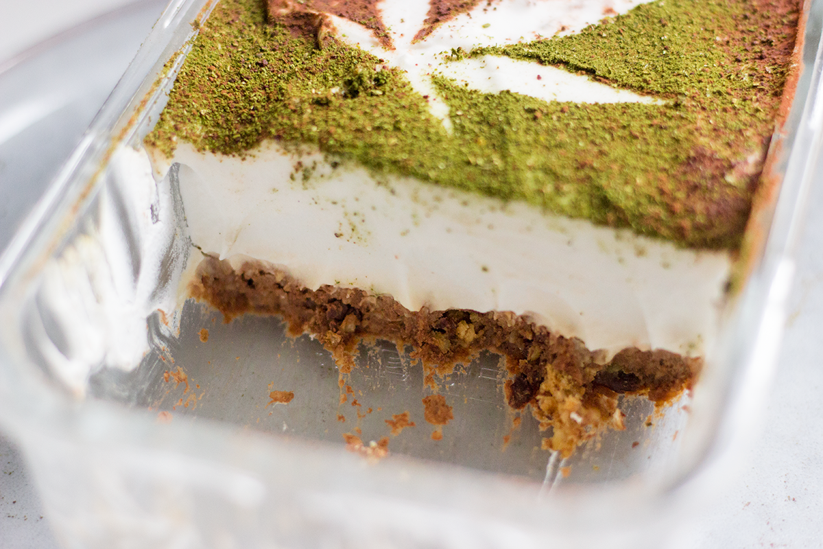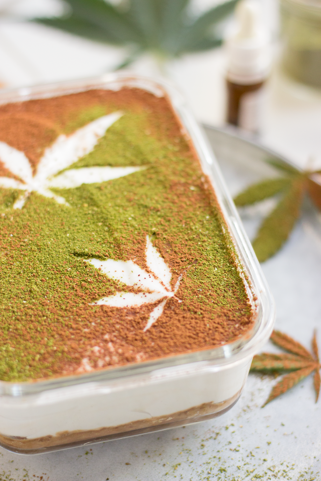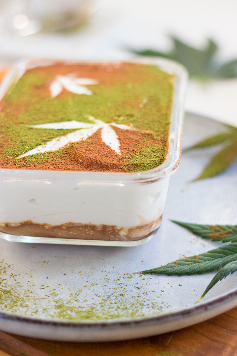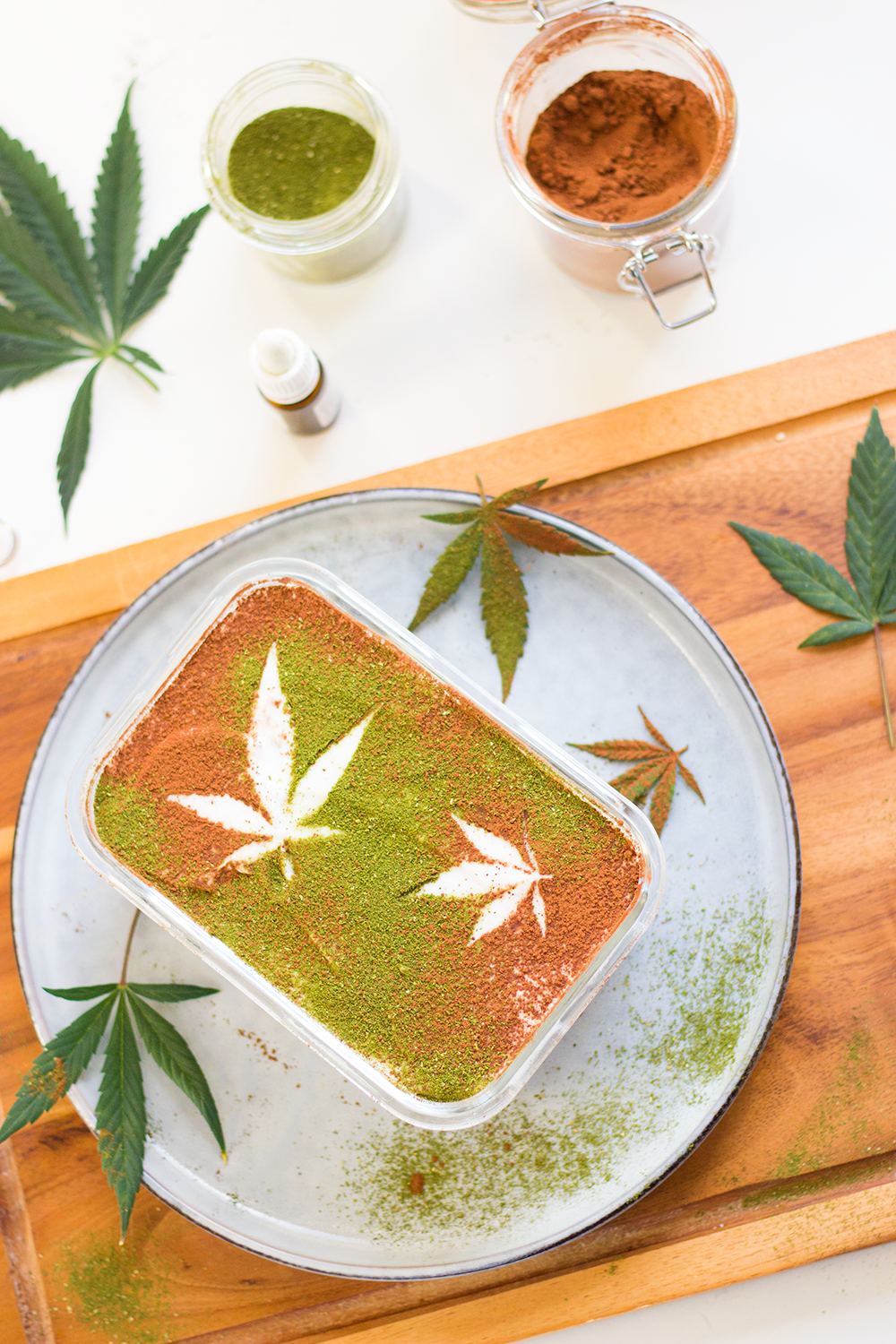 Duża zawartość tłuszczu to w tym przypadku duża zaleta, którą wykorzystamy by połączyć ciasto z ekstraktem bogatym w kannabinoidy. Możesz użyć swojego ulubionego olejku CBD, który dzięki połączeniu z maską kokosową będzie miał większą biodostępność. Jeśli planujesz zjeść deser ze znajomymi i nieco się rozerwać, dodać swój domowy ekstrakt z marihuany, na przykład masło z THC. To nie koniec konopnych dodatków. Wytrawne i nieco gorzkie zwieńczenie tiramisu w postaci kakao może być zastąpione matcha, która też posiada lekką nutkę goryczy. Dlatego w przepisie użyłam intensywnie zielonej, konopnej matchy, która powstaje z suszonych liści konopi.