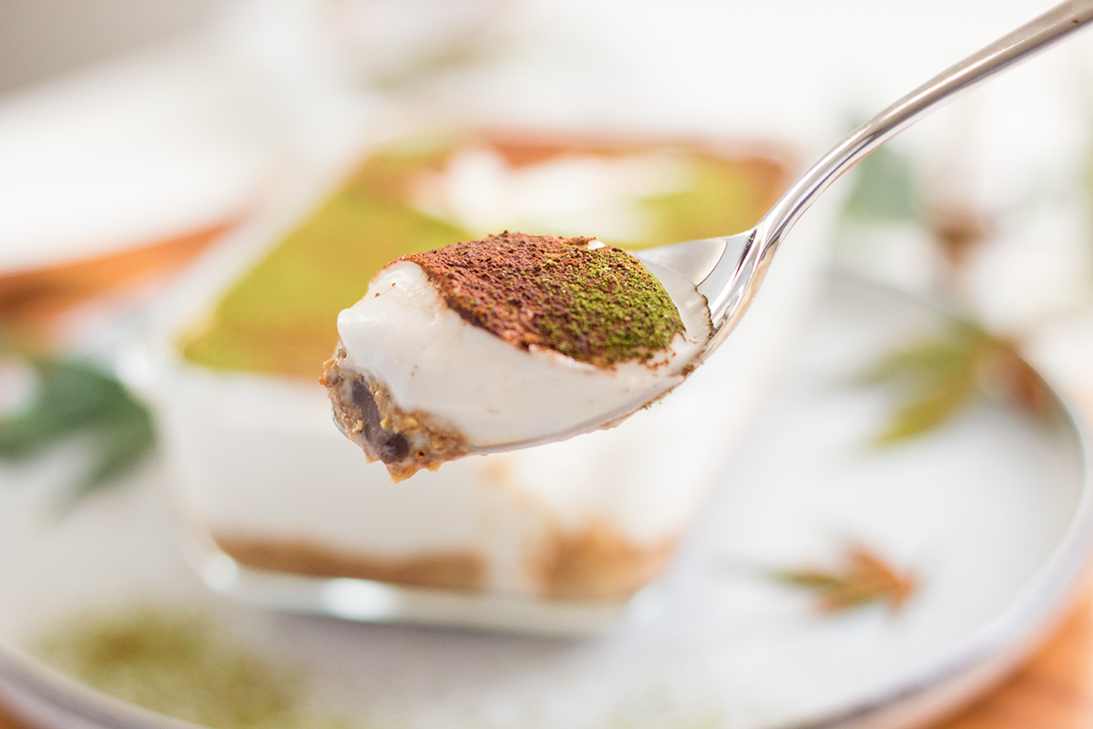 Duża zawartość tłuszczu to w tym przypadku duża zaleta, którą wykorzystamy by połączyć ciasto z ekstraktem bogatym w kannabinoidy. Możesz użyć swojego ulubionego olejku CBD, który dzięki połączeniu z maską kokosową będzie miał większą biodostępność. Jeśli planujesz zjeść deser ze znajomymi i nieco się rozerwać, dodać swój domowy ekstrakt z marihuany, na przykład masło z THC. To nie koniec konopnych dodatków. Wytrawne i nieco gorzkie zwieńczenie tiramisu w postaci kakao może być zastąpione matcha, która też posiada lekką nutkę goryczy. Dlatego w przepisie użyłam intensywnie zielonej, konopnej matchy, która powstaje z suszonych liści konopi.